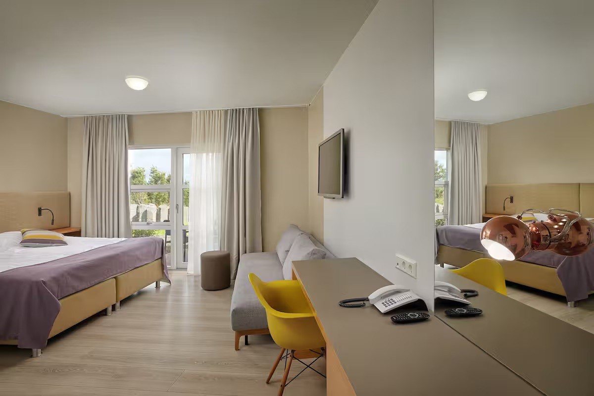 Our Family rooms are spacious with a double bed and an extra sofa bed can be added. It offers all the amenities you would expect. Enjoy the hot tubs and sauna after a long day, and shower with our luxury L'Occitane products afterwards. All the rooms are on the ground floor with direct access to an outdoor patio with chairs. Family rooms can accommodate 3 persons.